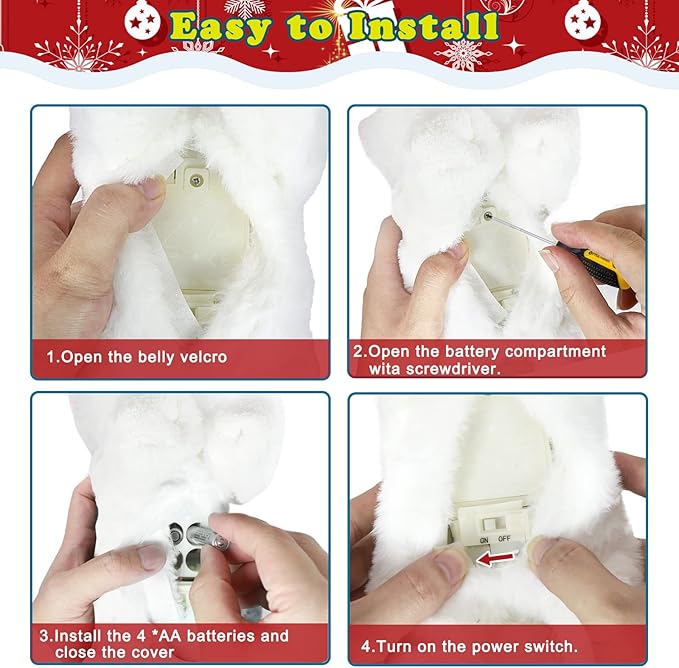 - 【I AM EASILY OPERATED】Dear master,you can let your parants help you to use a screwdriver to open the cover of the battery box (at my belly), and Load the 4 * AA batteries; adjust the switch to the [ON] position; then you can tap my body or give a handclap.That's all!TYE ME!