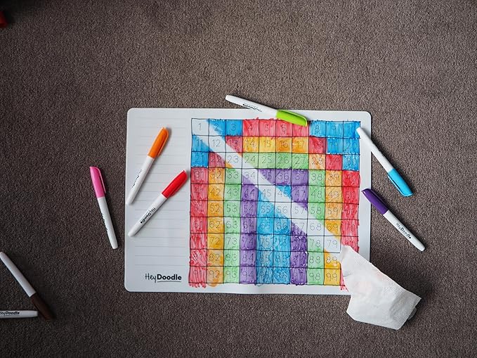 100 Squares Classic Doodle Mat – Reusable Silicone Math Activity for Toddlers and Kids – Educational Number Chart with 9 Dry Erase Markers – Mess-Free Learning Toy – Ages 3-7