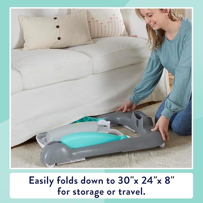 - Foldable Baby Walker For Easy Storage And Travel – Folds flat for convenient storage or transport. Removable seat is machine washable, and snack tray wipes clean. Includes swivel front wheels for smooth turns and non-skid pads to help keep little ones safe as they explore.