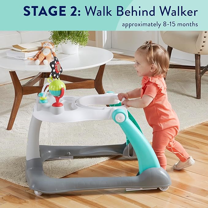 - Adjustable 2 Stage Toddler Push Walker – Versatile baby walker grows with your child from a seated infant activity walker to a sturdy walk-behind push walker that encourages balance and first steps. Adjustable height seat ensures proper foot placement for growing babies.