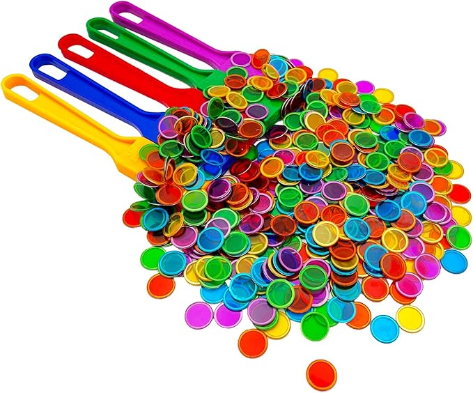 Magnetic Bingo Wand, 5-Pack & 500 Metal Chips, 5 Colors - Large Group Game, Family Night, Sensory Activity, Educational Science Tool