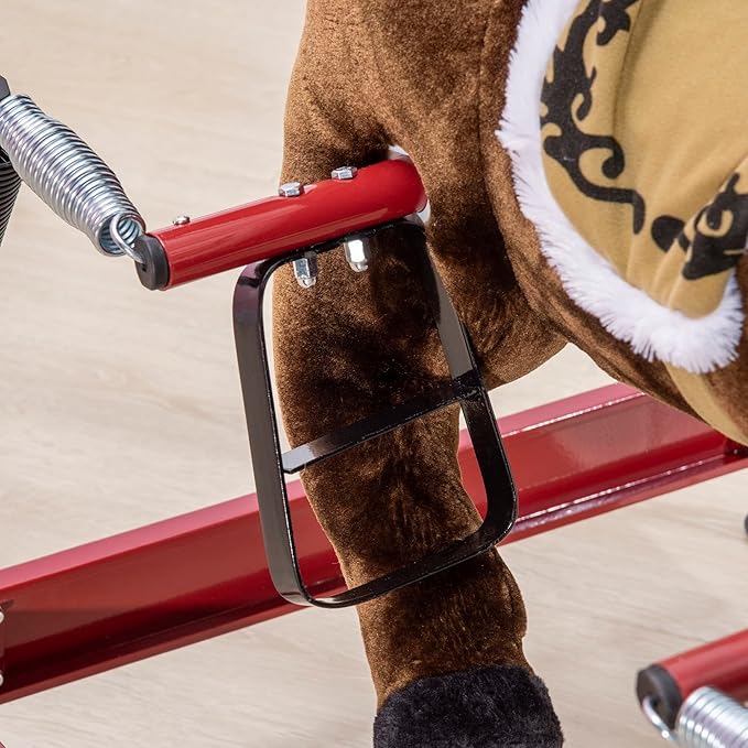 Qaba Kids Spring Rocking Horse, Ride on Horse for Girls and Boys with Animal Sounds, Plush Animal Ride-on Toy with Soft Feel, Interactive Toy for Kids, Dark Brown