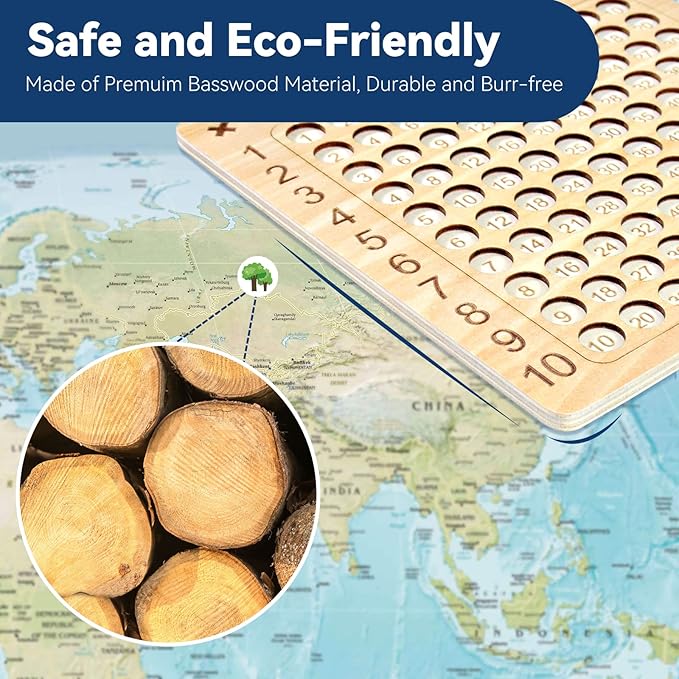 - Premium Quality Wooden Material: This multiplication board is made of natural wood which is not easy to damage and durable. Smooth surface without burrs make sure children can play with confidence. Pass all federal toys tests by laboratory- ASTM and CPSIA.