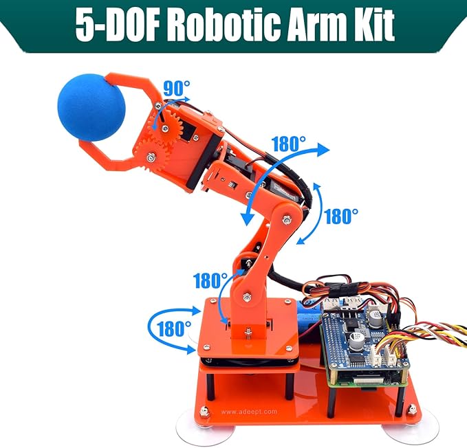 Adeept 5-DOF Robotic Arm Kit Compatible with Raspberry Pi 4 B 3 B+ B A+, Programmable DIY Coding STEM Educational 5 Axis Robot Arm with Python Code and Tutorials(PDF) - Orange