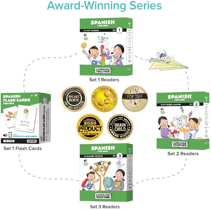 - Developed with teachers, the front of each card features only a picture to encourage recognition and recall. Kids eagerly flip the card over to find the surprise illustration, the Spanish word and example sentence (with the English translation in the corner for optional support). Kids will ask for “One more card!” as they learn valuable Spanish vocabulary and are inspired to review and practice on their own.