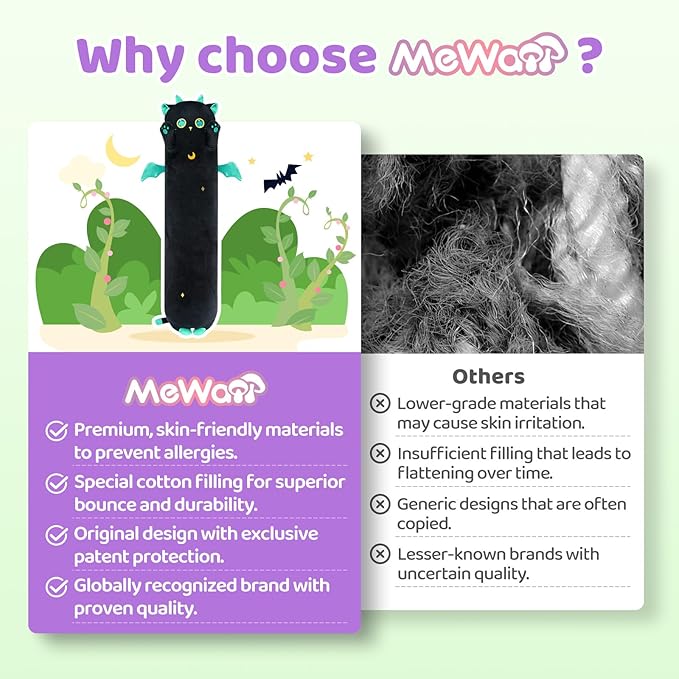 - Cat Body Pillow Multipurpose: We provide you not only a multiple-size hugging pillow, but also the best lumbar body pillow when you sitting on a sofa, and also the most comfortable sleeping pillow for a sweet sleep on the bed.