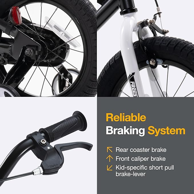 - 🏆Sporty Design - RoyalBaby Freestyle kid's bike was designed by inspiration from the BMX spirit, It's all about fun, creativity, freedom, and friends. The sporty-looking is perfect for the next cycling star!