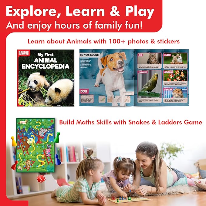 - ✅BEST PRESCHOOL LEARNING ACTIVITY: Doctor Jupiter's Little Genius Kit promises a one-of-its-kind fun learning experience in various aspects of science, maths, language, etc. for your little genius of age 4 to 6-year-old. It comes with a maths game, science experiment activities, a language game, and an animal encyclopedia with 60+ real-world images and 50+ stickers.