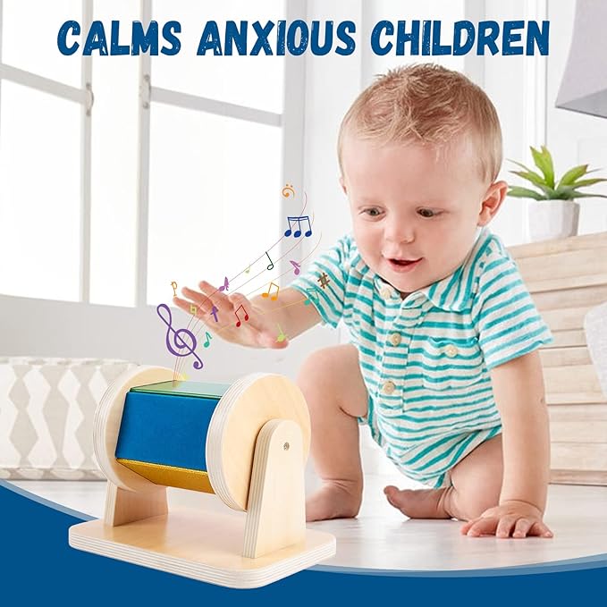- đăStimulates Auditory Sensesă The drum contains rolling wooden blocks that produce soft, soothing sounds when spun. It offers multi-sensory stimulation while creating a calm and enjoyable play experience for babies.