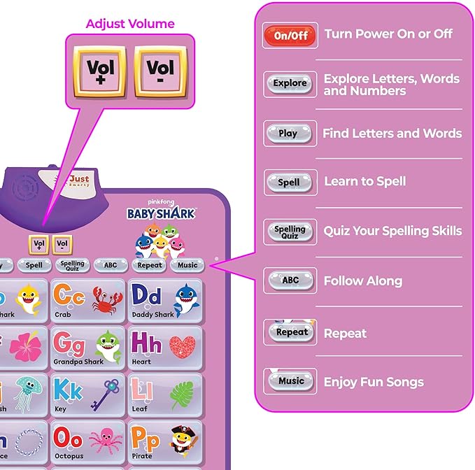 - ✅ Official Baby Shark Product: Captivate your toddlers with this authentic interactive Pinkfong Baby Shark educational poster, featuring Baby Shark and friends! It’s specifically designed to instruct the alphabet, numbers, and words, ideal for the playful minds of toddlers aged 1-3 years, including baby shark toys for 2 year old girl.