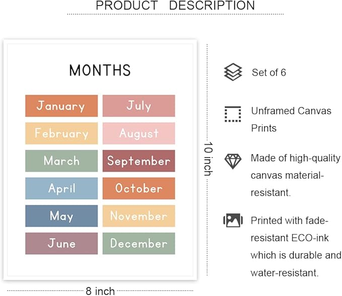 - 【 Baby Gifts 】 educational wall art posters Charts included: ABC Poster, Numbers 1-100, Numbers 1-20, Colors, Days of the Week, Months of the Year, weather, can be used on new year, children's day, baby shower, birthday, christmas etc, the perfect gift for teachers and homeschool parents.