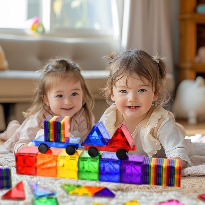 - Creativity and Imagination: Magnetic tiles provide an open-ended play experience, allowing children to unleash their creativity and imagination. With the ability to connect and build in various configurations, kids can design and construct a wide range of structures, from simple houses to complex architectural marvels.