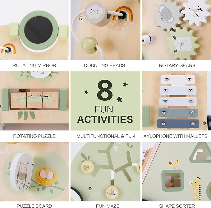 - Montessori-Inspired Developmental Support - The built-in toys and activities on the walker provide endless entertainment for your little one. From shape sorters to rolling beads, there are plenty of engaging elements to keep them entertained and curious. Suitable for both boys and girls, this walker features a charming and colorful design that appeals to young children