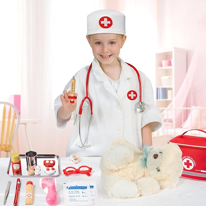 - IDEAL SET FOR TODDLERS: This kids doctor set is perfect for various occasions such as parties, pretend play, role play, class rewards, holiday toy , stocking stuffers, and birthdays. Playing with the EFOSHM doctor set helps children learn about doctors and alleviates their fear of medical visits.
