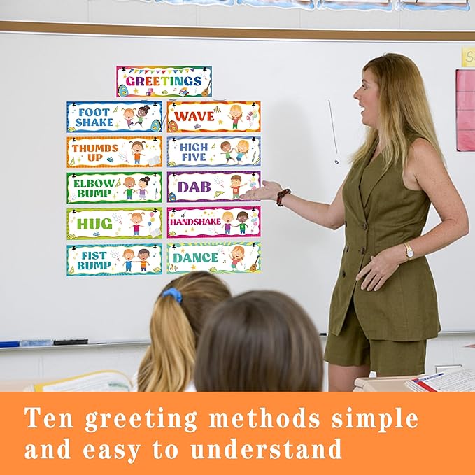 Wehhbtye Greeting Choice Classroom Rules Posters,Social Greeting Poster,Classroom Must Haves Poster for Teacher Supplies and Preschool