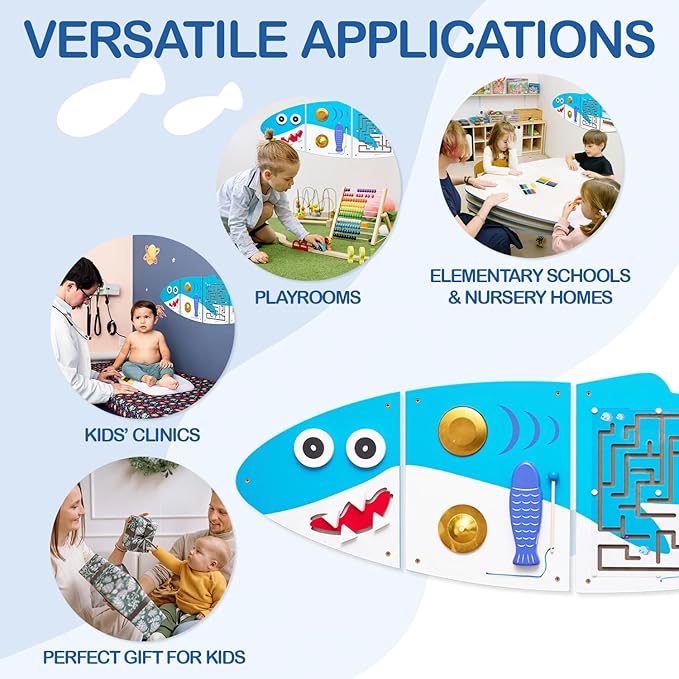 Monläurd® Shark Montessori Busy Board, Sensory Board, Educational Toys, Sensory Wall Panel, Wall Toys, Daycare Furniture, Playroom Furniture, Learning Toys, Boys and Girls 6 M+