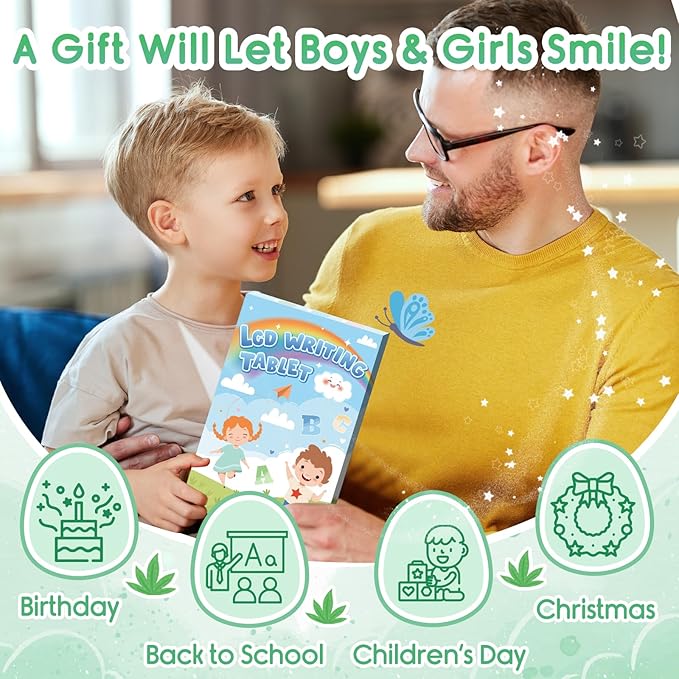 - [Kids Easy to Have Fun & A Ideal Gift Choice]: The lcd tablet is a good educational learning toy, which helps child free their imagination and creativity. It is the best 3 4 5 6 year old boys girls’ gifts and toys. Perfect Choice as gift for back to school, birthday, Thanksgiving Day, Easter and any occasion.