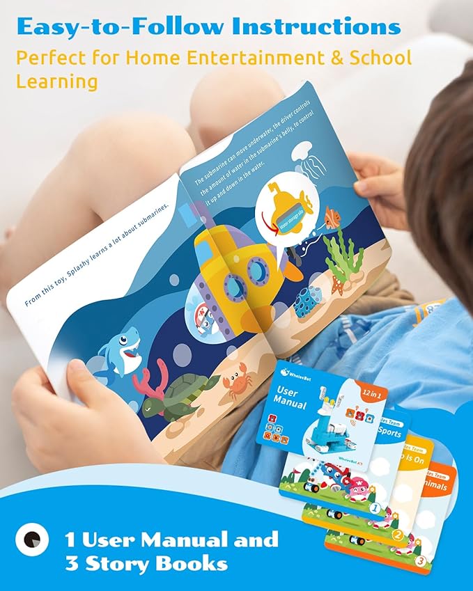 WhalesBot A3 12-in-1 STEM Blocks Coding Robot Kit for Kids, 61-Piece Educational Building Set with Interactive Storytelling, Ideal Toy Gift for Boys & Girls Ages 3-6