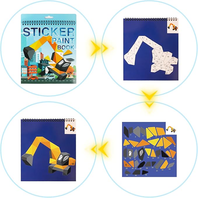 Vehicle Paint by Sticker Book Crafts for Kids Ages 4-8 Sticker by Number Boys and Girls Birthday Gifts Party Favor, Travel Toys Car Stickers for Toddler Learning
