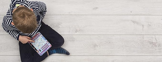 - Touch-sensitive tablet with sounds: press any button and the tablet will announce the matching letter, number or word.