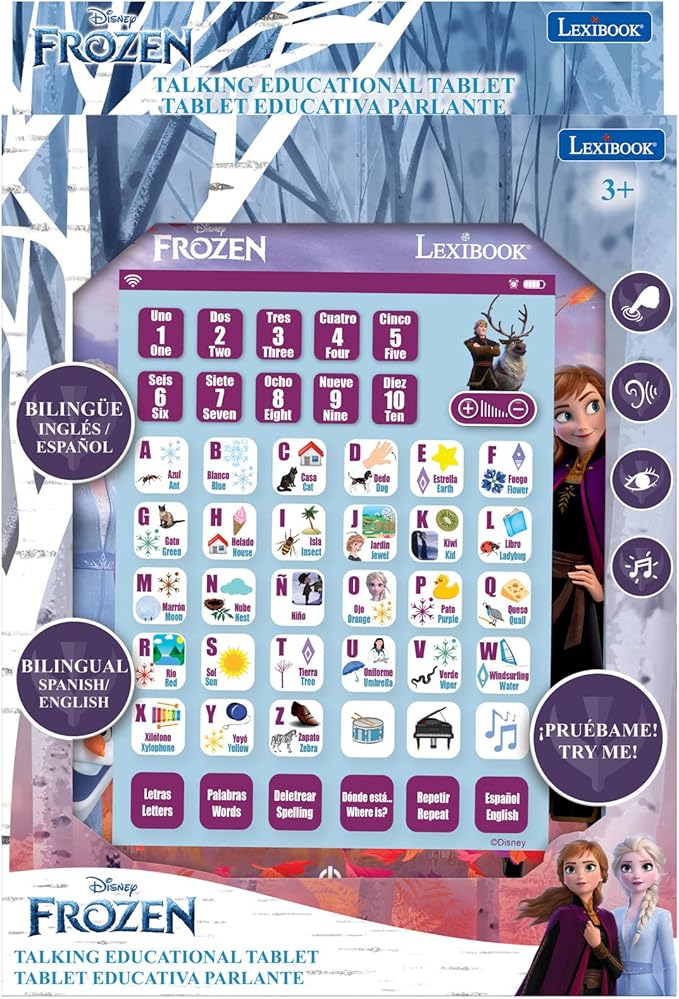 LEXiBOOK Disney Frozen, Educational Bilingual Learning Tablet, Learn Letters Numbers Words Spelling and Music, English/Spanish Languages, Blue, JCPAD002FZi2