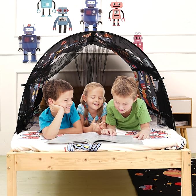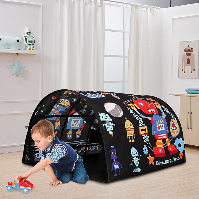 Kids Bed Tent Twin Beds -Cartoons Wonder Play Tents Boys Girls Ventilated Indoor Play Tent Children Promotes Independent Play, Stimulates Imagination Set-Up Playhouse (Robots)