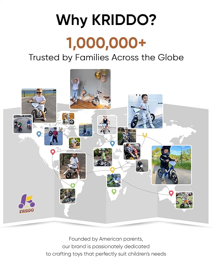 - EXTRA-THICK ALL-TERRAIN TIRES – We want kids to feel strong and stable when they’re moving on grass and sidewalks which is why we added puncture-resistant tires to the front and back of each balance bike for 3-year old’s and 18-month-old riders.
