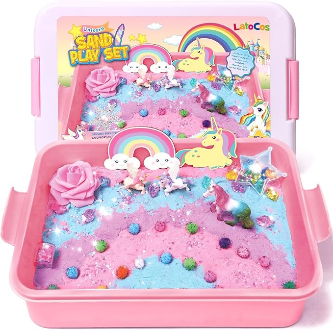 - Creative Unicorn Toys - The sand art kits for kids is designed for girls aged 3 4 5 6 7 8. Not only a sensory bins for toddlers 3-4, but also girl toys, Christmas and birthday gifts for girls, toddler girl gifts, arts and crafts for kids ages 6-8. Our sensory bins encourage tactile and visual engagement, also stimulate fine motor skills, hand-eye coordination, aesthetic and imagination