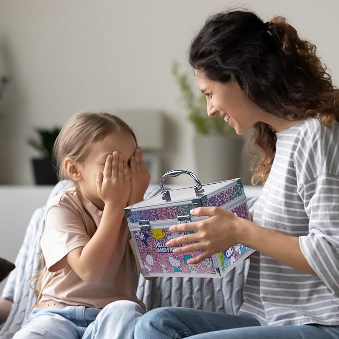Hello Kitty & Friends - Townley Girl Train Case Makeup Set for Kids, Includes Lip Gloss, Eye Shimmer, Nail Polish, Brushes, and More! Perfect for Parties, Sleepovers, and Makeovers. Non-Toxic, Ages 3+