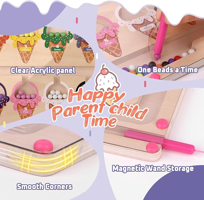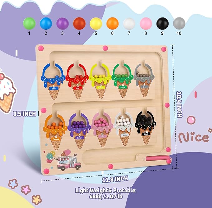 - 【Number and Color Maze】This is an educational toys designed to help kids recognize colors and learn numbers. Kids can use the magnetic stick to attract magnet beads into the corresponding place. This keeps the busy and focused, enjoys color sorting and counting, and inspires interest in learning number and color.