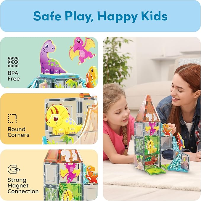 - ULTIMATE SAFETY: BPA-FREE & CHILD-SAFE DESIGN! Safety is non-negotiable. Our magnetic tiles and figures are rigorously tested, BPA-free, non-toxic, and feature smooth, rounded edges. Enjoy complete peace of mind during playtime for kids age 3 and up.