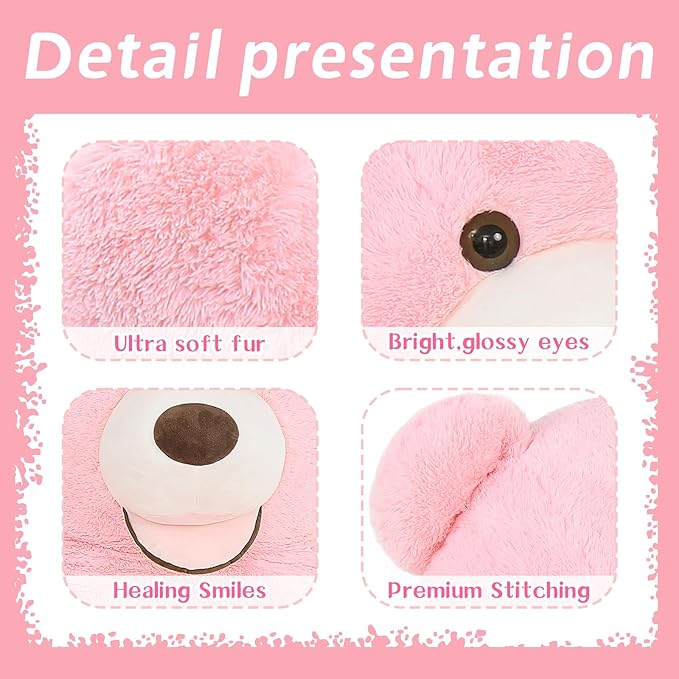 MaoGoLan Giant Pink Teddy - 6ft Stuffed Animal, Smiling Face, Large Plush - Life Size Gift for Valentines Day, Anniversary, Birthday