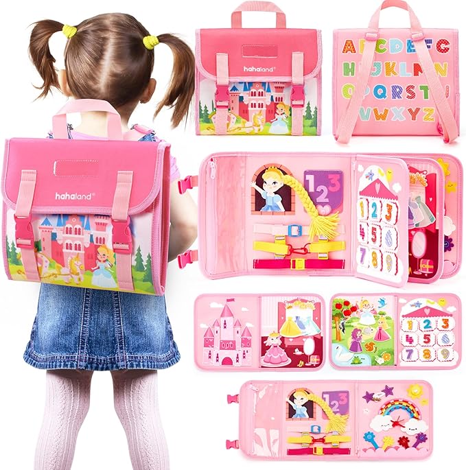 - Gifts Toys : Looking for a unique, educational gift that stands out? The Montessori Busy Backpack is an ideal choice for birthdays, holidays, and any occasion in between.17 in 1 Busy Backpack is packed in boxes, which make a perfect gifts for girls and boys.hahaland busy board is definitely the perfect gift ideal that's not messy, noisy or screen time. Give the gift of learning and witness the joy as your toddler explores, learns, and grows with this unique educational backpack