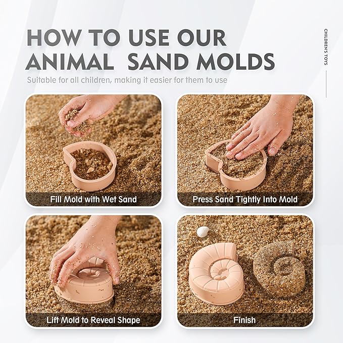 - Versatile: This set contains all the beach essentials for keeping your children engaged for hours. Just sit back and relax as your children use the silicone molds to make fun shapes in the sand. Easy to clean, you can also use them in the bath