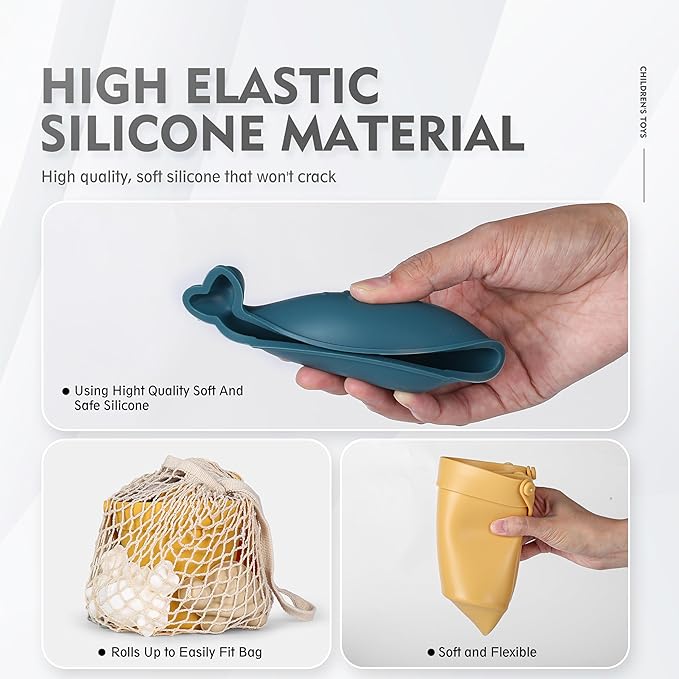 - Modern Beach Toy Set: This silicone beach toy set is excellent for children to use at the beach, pool and bath! Endlessly reusable and 100% free of nasties like BPA, they are a modern alternative to traditional plastic toys