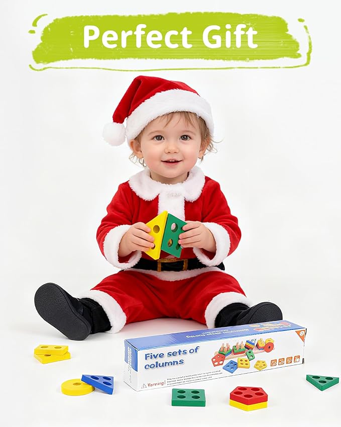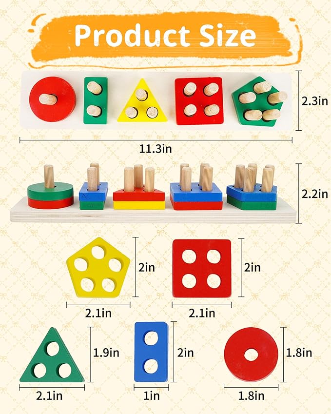 - Foster Early Learning & Discovery:Spark a love for learning through playful discovery! Our Montessori-inspired toy includes 20 natural wooden blocks in 5 vibrant colors and 5 geometric shapes. It's designed to naturally teach color recognition, shape sorting, and fine motor skills, offering richer play and turning playtime into a rewarding educational experience for your curious toddler.