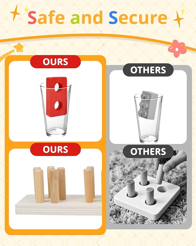 - Uncompromising Safety & Premium Quality:Built to last and safe for little hands. We use only 100% natural, solid wood and non-toxic, child-safe water-based paint. Each block is meticulously sanded to a smooth finish with rounded edges, rigorously tested to meet and exceed all ASTM, CPSIA, and CPC safety standards.