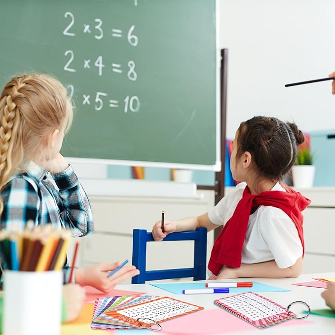 - Pocket Size: The time table flashcards size is 5.9x3.54 inches/15x9 cm, and has a rounded edge design to avoid scratching. The binder rings can not only be stored and organized, but can also be hung on a school bag, making it easy to carry and study at any time.