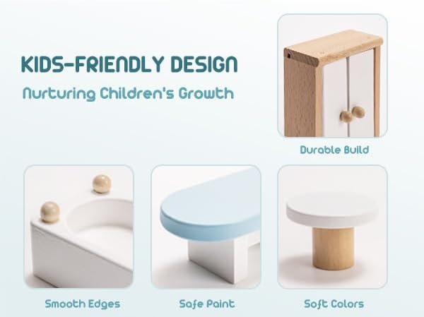 ROBOTIME Dollhouse Furniture, Wooden Doll House Furniture Set, 23 PCS Doll House Accessories and Furniture, Dollhouse Furniture Gift for Boys and Girls