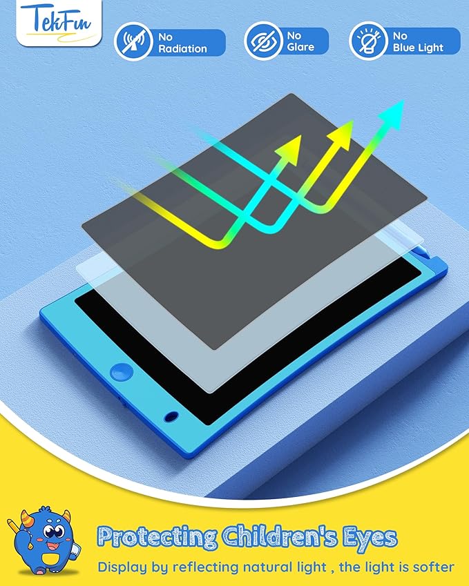 - Eye-Friendly: Say goodbye to blue light and glare with TEKFUN's LCD screen. Your child can draw for hours without straining their eyes, making it a great electronic alternative for preventing visual impairment.
