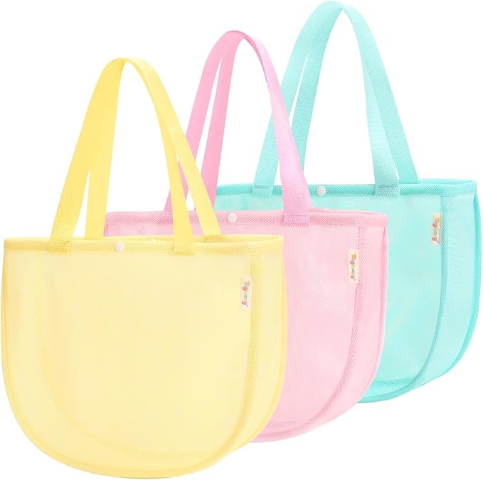 Tagitary Beach Toy Mesh Beach Shell Bags for Kids, Sand Toys Kids Beach Essential Treasure Bag Swimming Pool Bag Beach Gift for Boys and Girls(Only Bags,A Set of 3)