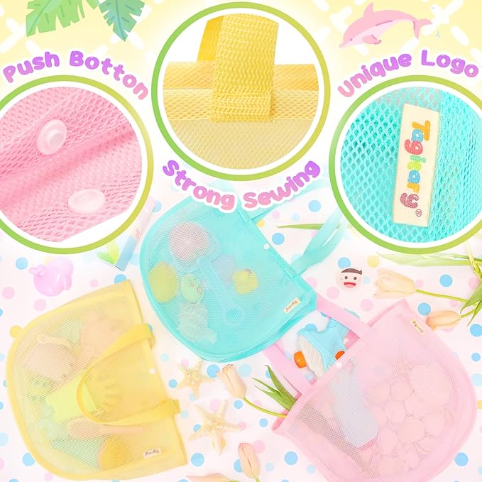 - Tagitary Colorful Beach Mesh Bag: High quality mesh bag makes it easier for kids and adults to have fun at the beach,put all their belongings in it,and free their hands.The eye-catching color scheme looks brighter and more romantic when used on the beach