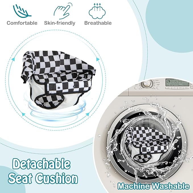 - 【Enhanced Comfort & Safety】The detachable seat cushion is comfortable, skin-friendly, breathable. When getting dirty, the seat cushion can be machine washed. Ergonomic backrest and soft foot pad promote correct postures from sit to stand. Stable anti-rollover pyramid frame and 7.5" proper distance against the wall avoid potential accidents. Our quality is further affirmed by ASTM & CPSIA certification.