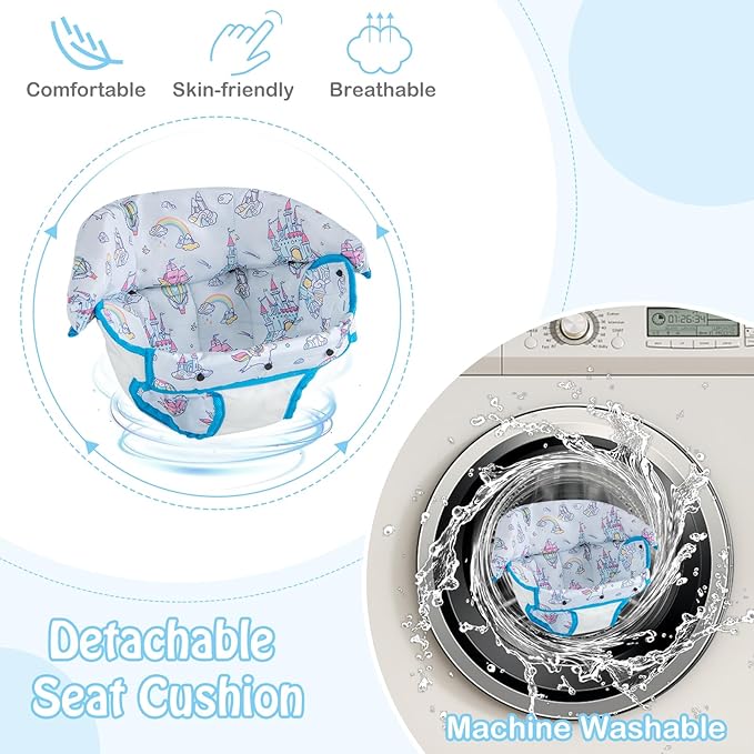 - 【Enhanced Comfort & Safety】The detachable seat cushion is comfortable, skin-friendly, breathable. When getting dirty, the seat cushion can be machine washed. Ergonomic backrest and soft foot pad promote correct postures from sit to stand. Stable anti-rollover pyramid frame and 7.5" proper distance against the wall avoid potential accidents. Our quality is further affirmed by ASTM & CPSIA certification.