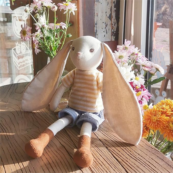 - 【Sensitive skin friendly Material】Outer surface of the bunny doll is linen cotton + PP cotton filling + 100% cotton Tshirt and pants (can not be take off), worry-free plushies are CPSIA, ASTM & CPC children safety certified products. baby-skin friendly. Suitable for all ages from 0+ and up,is the ideal companion to sleep with.