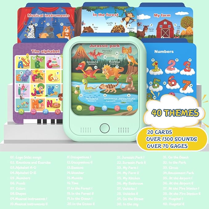 - 【40 Engaging Learning Themes】The toddler learning tablet have 40 intriguing learning themes covering letters, numbers, shapes, dinosaurs, animals, and more, this toddler learning pad offers a colorful array of learning content. Made from eco-friendly materials and subjected to rigorous quality checks, the cards ensure safety for children. Each card boasts exquisite design, vibrant colors, and clear shapes, captivating children's attention and fostering their interest in learning.