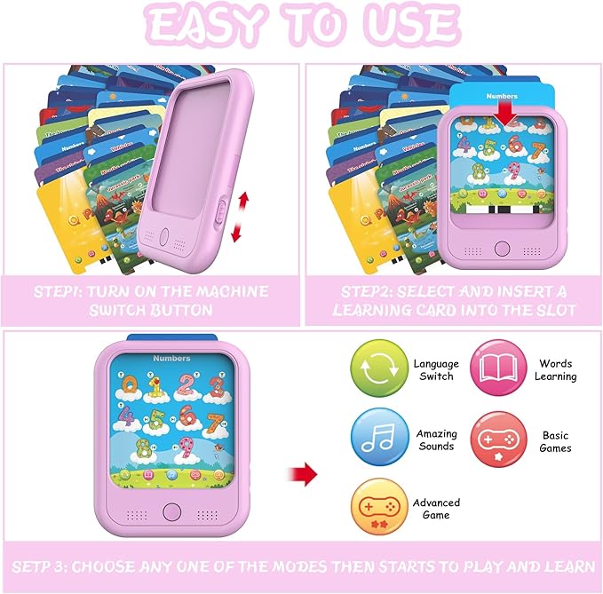 - 【Easy to use & Screenless Design】Simply insert the card into the slot of the educational learning tablet toy after powering on, and choose any mode to start playing and learning. Unlike many electronic products, this educational toy features a screenless design, effectively reducing children's screen time. This helps safeguard their visual health.