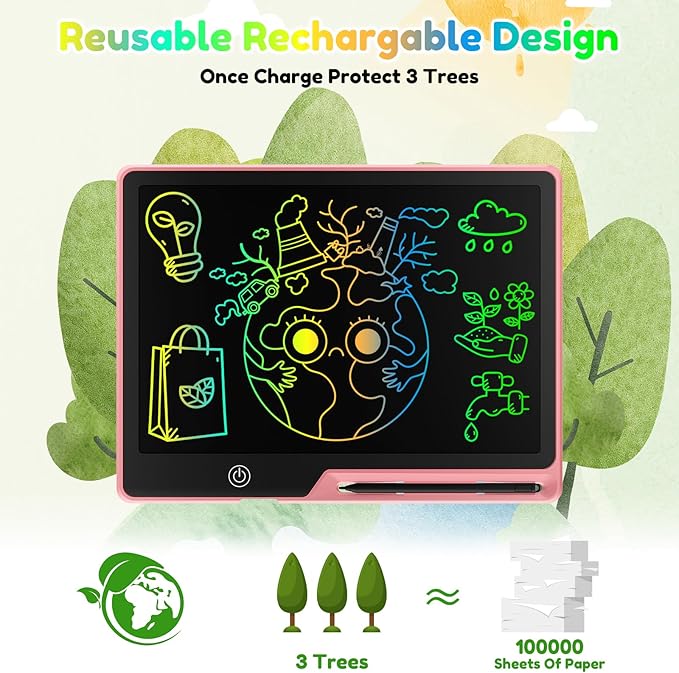 - 【Reusable & Prevent Mess】 A 10 kilogram tree can produce 1000 sheets of paper, The toddler writing tablet can be used 1000 times to replace 1000 sheets of paper on a single charge. You no longer need to worry about your walls and sofas getting dirty with the rechargeable led writing tablet for kids