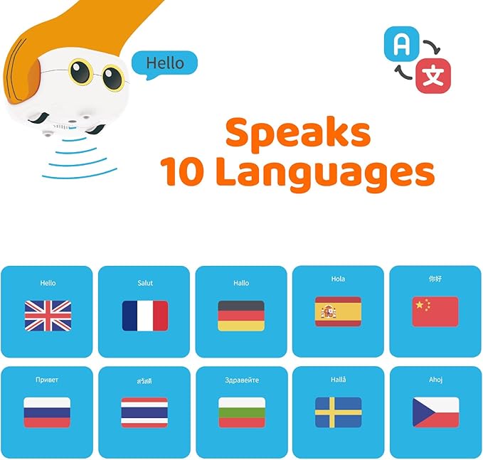 - 🧩MORE WAYS TO PLAY, MORE POSSIBILITIES: The educational robot compatible with Lego blocks to build more shapes for more fun and improve child's creativity and building skills. 10 languages are supported including English, French, German, Czech, Swedish, Spanish, Russian, Chinese, Bulgarian and Thai