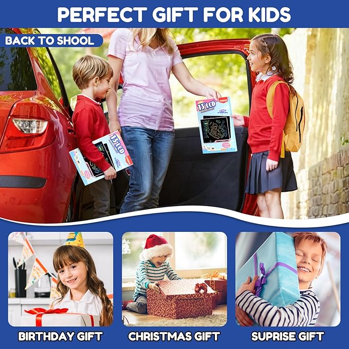 - 【Best Gifts for Kids】Kids' drawing board are fantastic educational toy that help kids unlock imagination and creativity. This LCD writing tablet is a top pick for parents shopping for 3-8 year old girls and boys—perfect for back-to-school, birthdays, Thanksgiving, Easter, Christmas, or any special occasion.